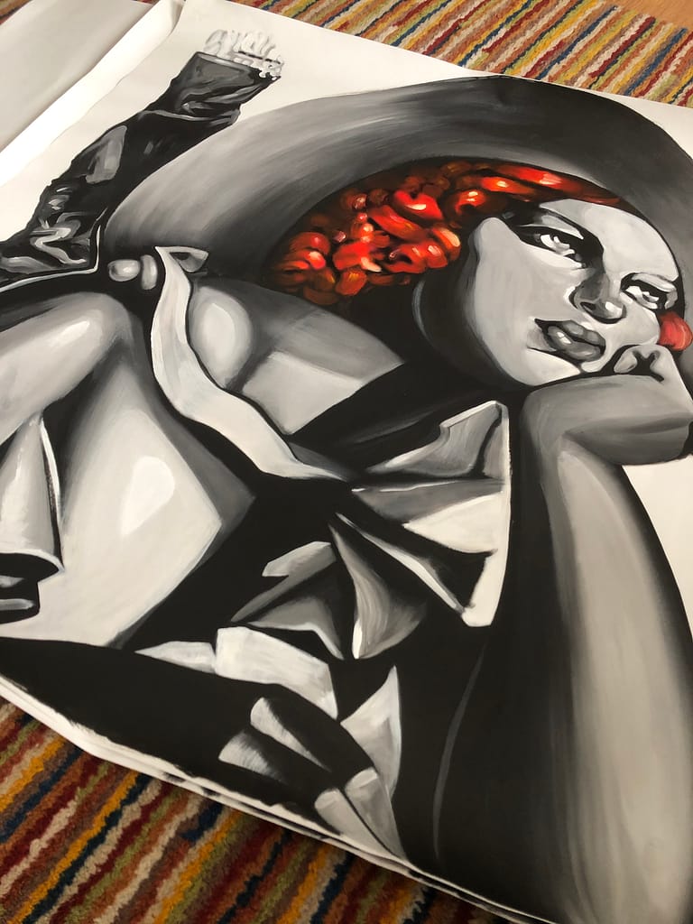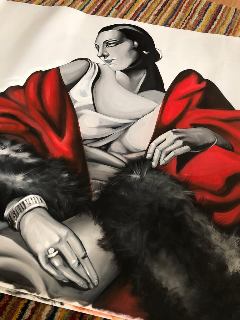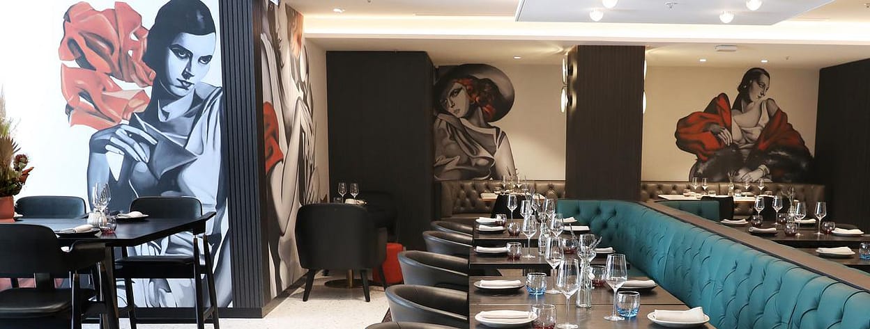 For this project we collaborated with greymatters architectural studio, working with them to design and create a range of bespoke textured wallpaper to be used in their restaurant project for Mövenpick Hotel in Hobart. The brief was to create artwork in the style of celebrated Polish artist, Tamara de Lempicka. Steve used acrylic paint on canvas for each individual piece, which was then sent for scanning ahead of use in the bespoke wallpaper. We are thrilled with the way each panel came up, and with how they work so seamlessly in the sophisticated, fine-dining space. If you’re in Hobart, make sure you book a table at this stunning new venue. Buon appetito!