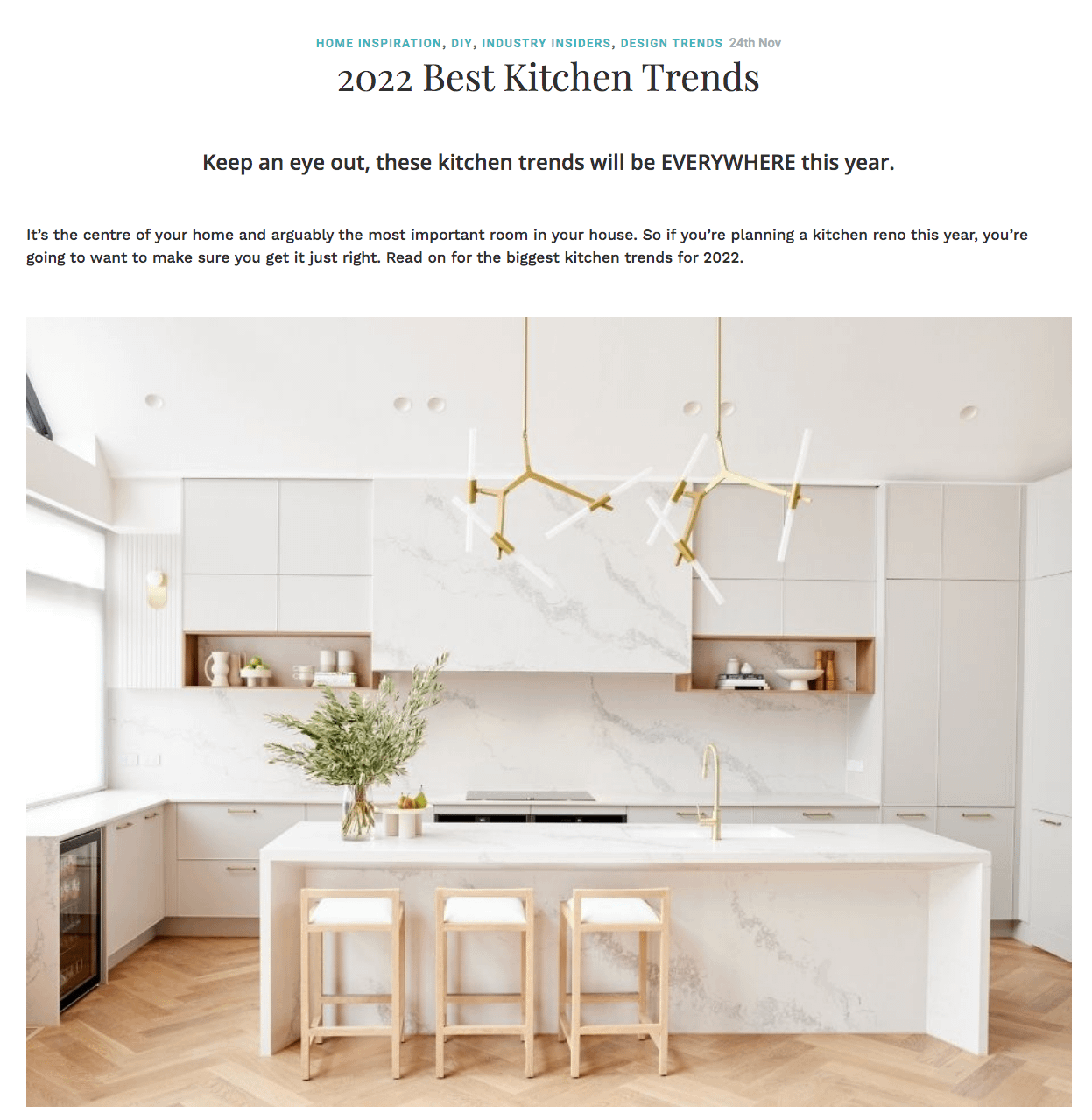 Talk about a dream collaboration! We have worked with popular e-commerce site The Block Shop for five years now, editing their popular Insider Style blog until 2020. We continue to write a variety of informative ‘pillar posts’ for the site, designed to drive traffic and boost SEO. We’ve also crafted advertorial posts for stockists and written a variety of cross-promotional posts to tie in with the site’s TV namesake, popular renovating series, The Block. We continue to provide content on an ‘as needed’ basis. And yes, we have spent an absolute fortune via this site since its launch! Explore one of our posts here.